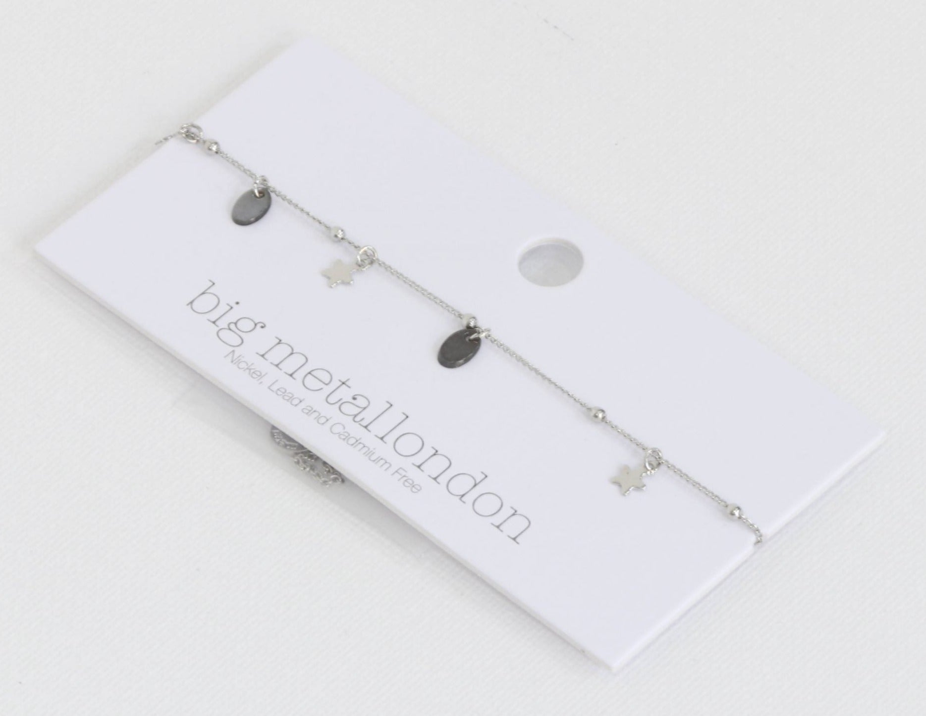 Big Metal London - Emilia Star Charm Shell Anklet - Silver