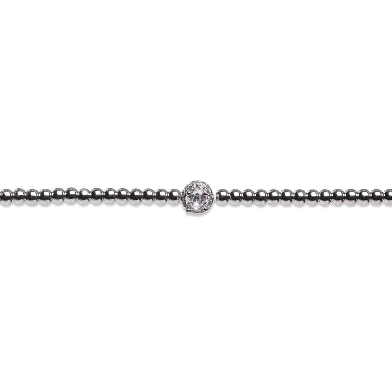In a silver plated finish, its beaded design offers a comfortable and stylish fit. The single cubic zirconia solitaire adds a touch of glamour, making it perfect for any occasion.