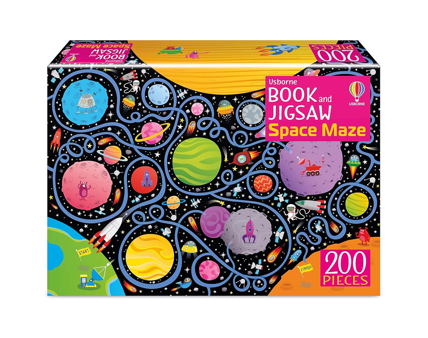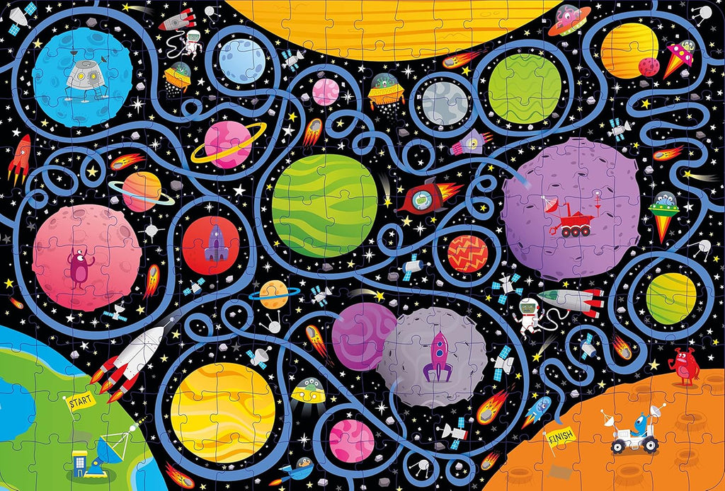 The Book & Jigsaw - Space Maze set combines a beautifully illustrated space-themed jigsaw puzzle with an engaging maze challenge once completed.