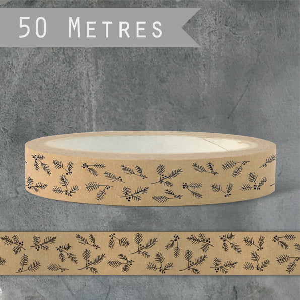 Crafted with attention to detail, this tape features a warm brown palette accented by delicate berry motifs, adding a seasonal yet sophisticated touch to your gifts. Its quality material ensures easy handling and a polished finish, making holiday wrapping effortless and stylish.