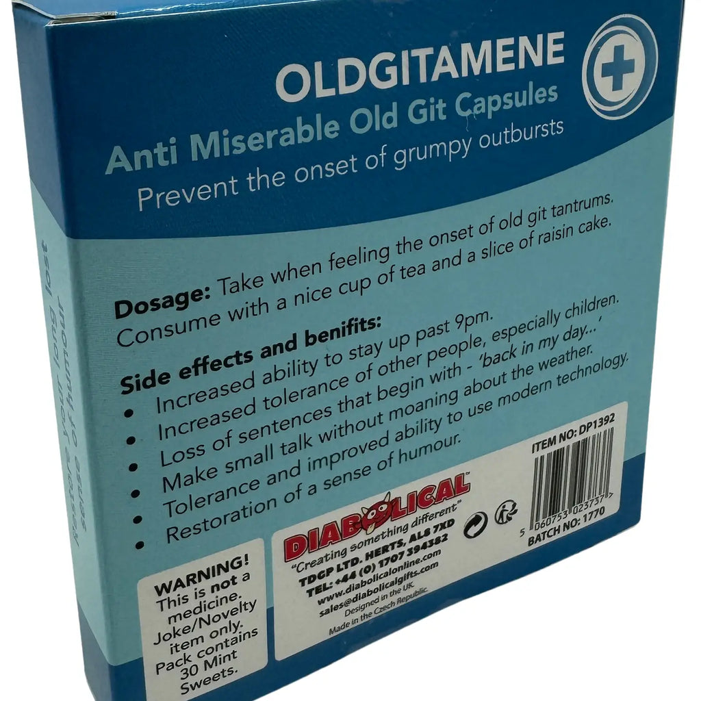 Packaged as a prescription-style mint pill box, it offers a humorous take on the classic grumbles about “kids these days” and nostalgia for the past. Filled with refreshing mints, Oldgitamene lightens those grumpy moments with a touch of wit, making it the perfect playful remedy for the lovable old git.