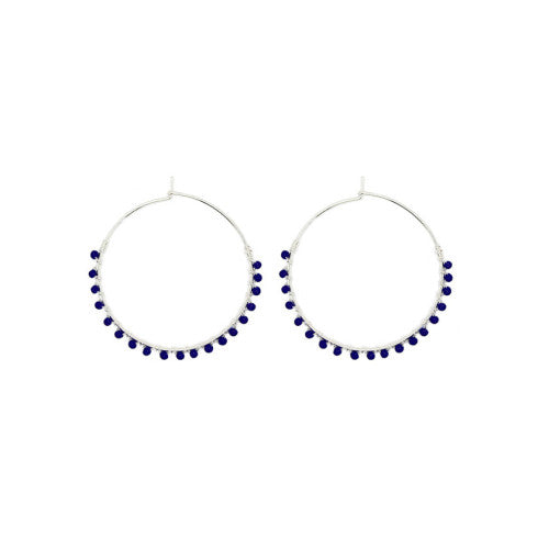 Isles & Stars - Beaded Hoop Earrings - Silver Navy