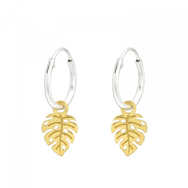 The delicate silver hoops are beautifully accented with a gold drop leaf, adding a touch of elegance to any outfit. Perfect for everyday wear, these earrings are a must-have for any fashion-forward individual.