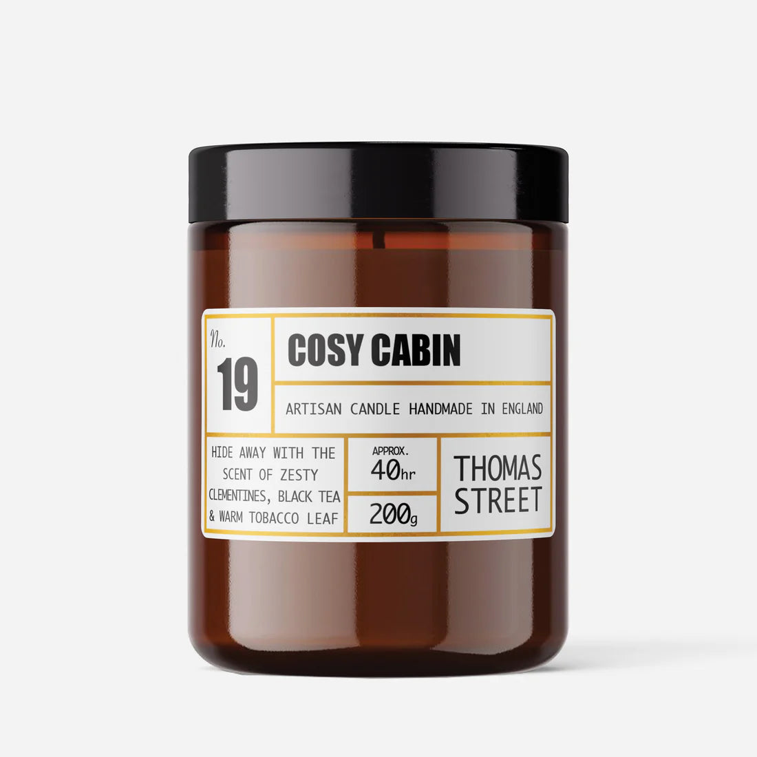 Escape to your own cosy cabin with this Thomas Street candle, featuring the invigorating scents of zesty clementines, comforting black tea, and warm tobacco leaf.