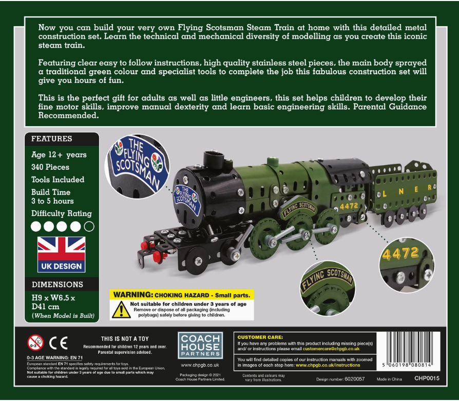 Discover the engineering marvel of the Flying Scotsman with this precise metal construction kit. Designed for enthusiasts, it offers an intricate assembly experience that highlights the mechanical complexity of this legendary steam train.
