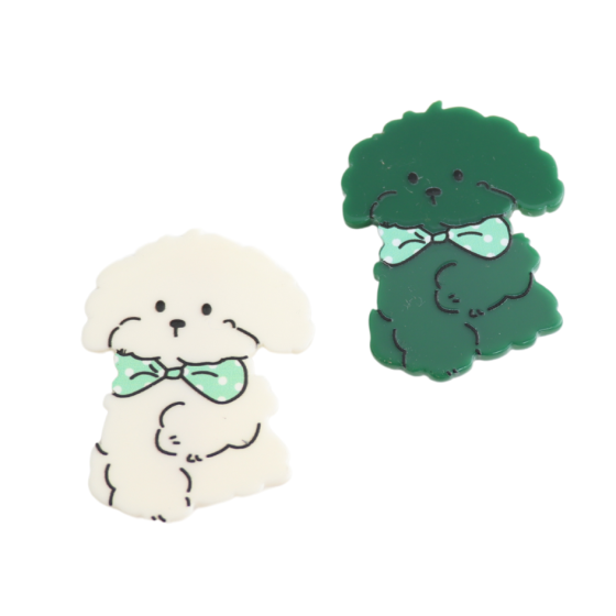 Enjoy a playful touch with this pack of 2 dog hair clips in white and green, tailor-made for dog lovers.