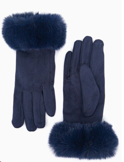 Constructed from soft velvet-textured polyester in a versatile navy blue, these gloves deliver warmth whilst maintaining a polished aesthetic. The touch screen compatible design allows uninterrupted use of your mobile devices in cold conditions, eliminating the inconvenience of removal. A thoughtfully crafted faux fur cuff enhances both comfort and insulation around the wrist area. The quality polyester material provides durability alongside a sumptuous feel, making these gloves an essential choice for discerning individuals seeking functional elegance during winter months.