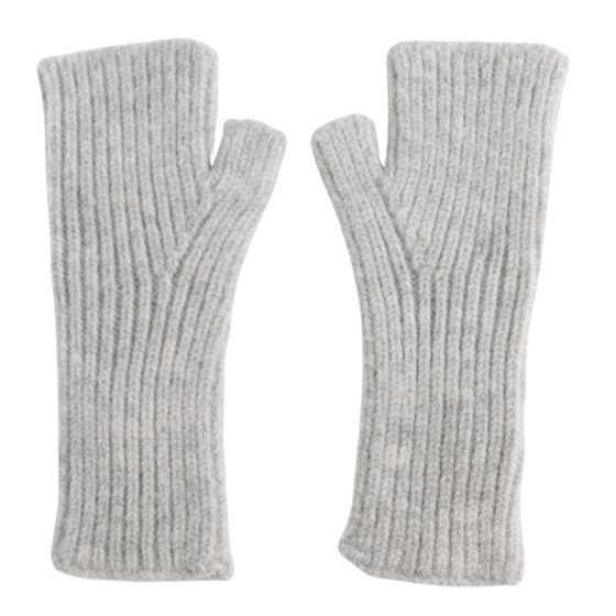 The Red Cuckoo Knitted Fingerless Gloves in silver offer warmth and cosy comfort, making them a practical choice for autumn and winter.