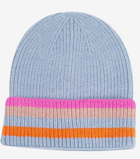 The light blue base features a striking multicoloured striped rim that adds visual interest and personality to your winter ensemble. Constructed from premium blended acrylic yarn, the ribbed design provides excellent insulation whilst maintaining breathability. The soft, tactile fabric delivers exceptional cosiness during cold weather, whilst the structured knit ensures durability and shape retention through repeated wear. The versatile colour palette complements various outfits, making this beanie an essential accessory for those seeking both functional protection and modern aesthetic appeal during the winter months.