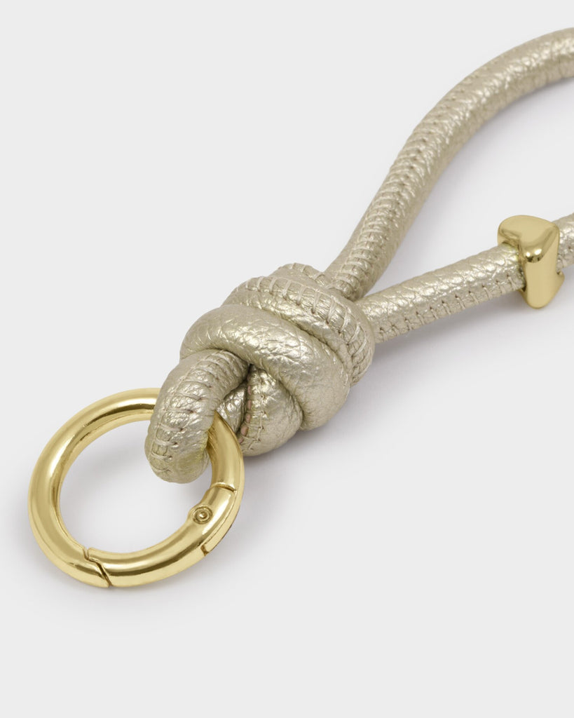 The Katie Loxton Gift Boxed Keyring and Cardholder in gold features patent crackle vegan leather paired with elegant gold-tone hardware.