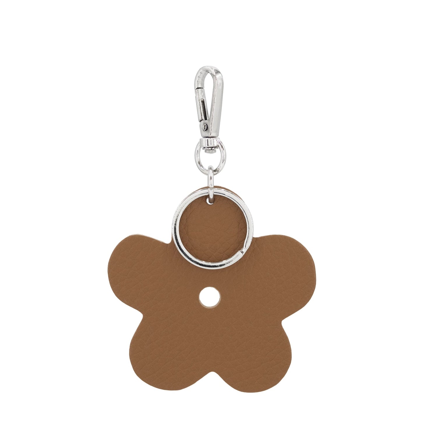 Crafted from genuine leather, this tan flower keyring combines practical functionality with refined aesthetics.