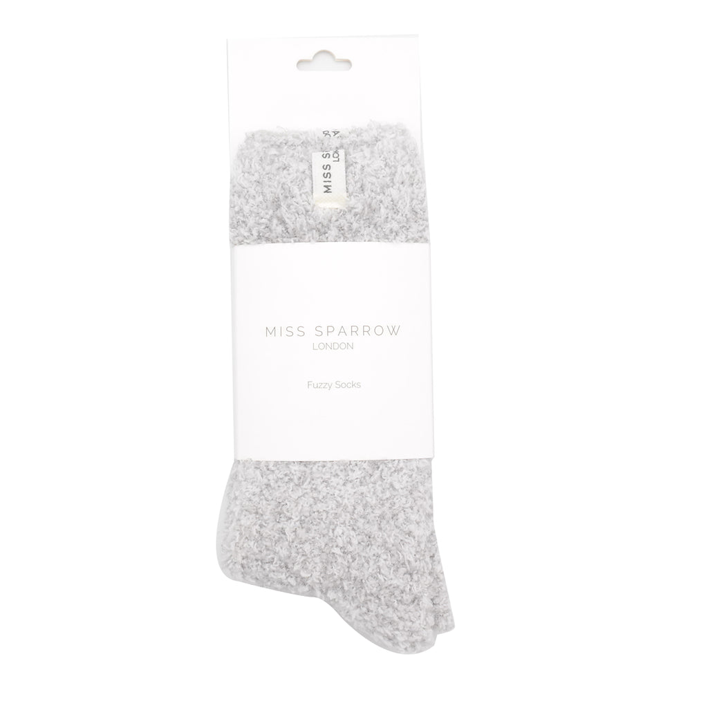 Miss Sparrow - Fuzzy Plain Socks - Silver - One Size - UK 3-7