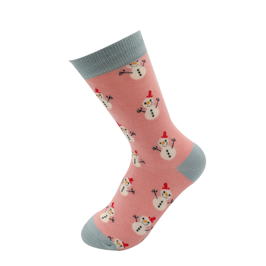 Add a touch of festive cheer to your Christmas with Miss Sparrow's Little Snowmen socks in dusky pink.