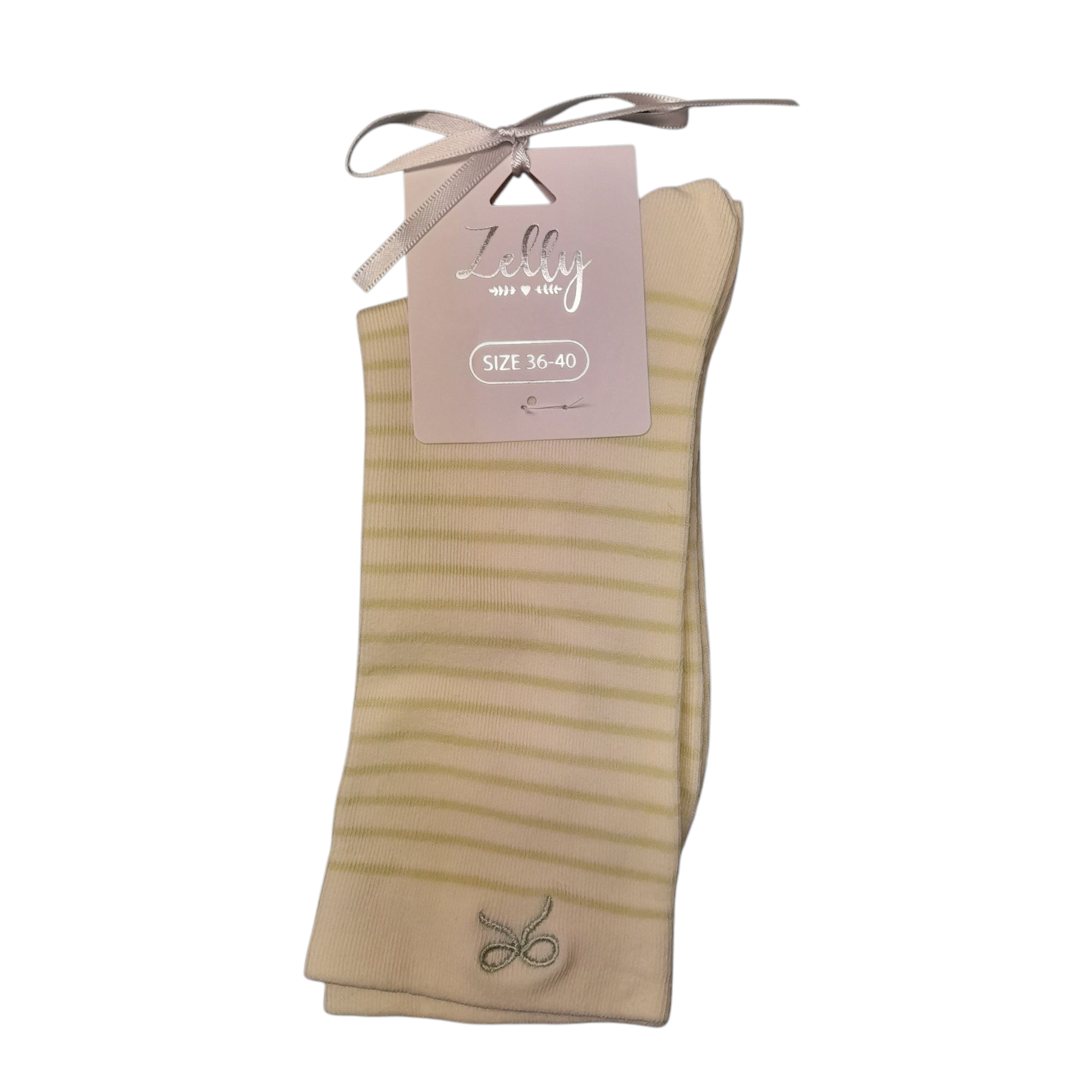 Zelly - Sophie Ankle Socks - Green Stripe & Bow - UK Size 4-7