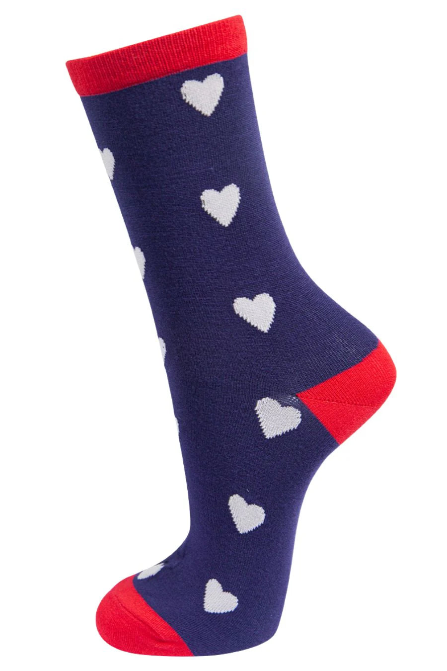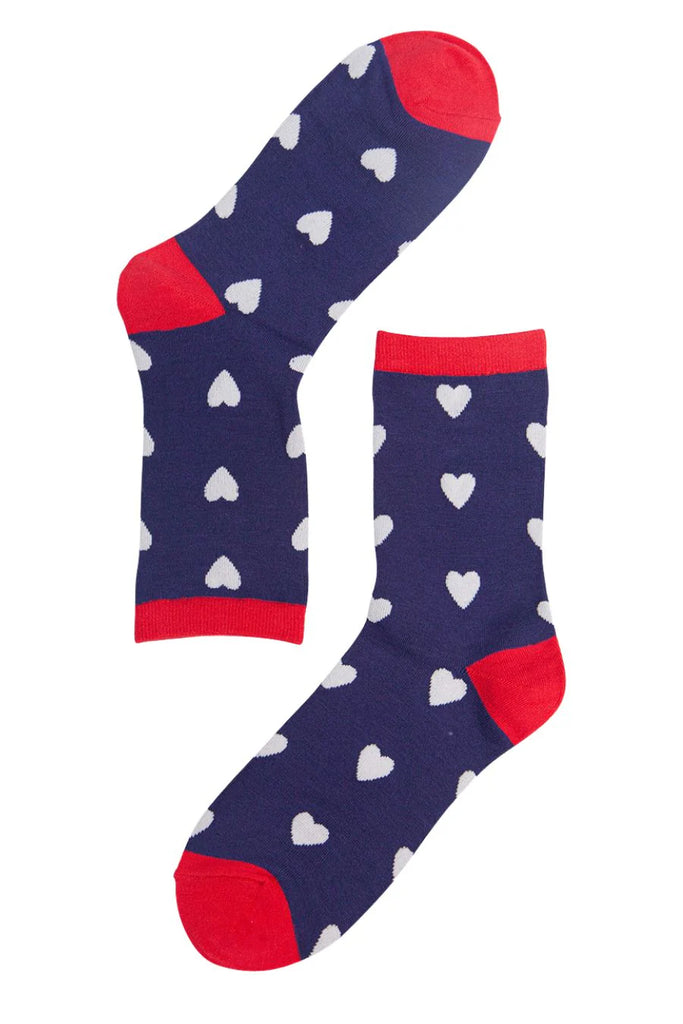 Women's Bamboo Socks - Navy Hearts - UK 3-7
