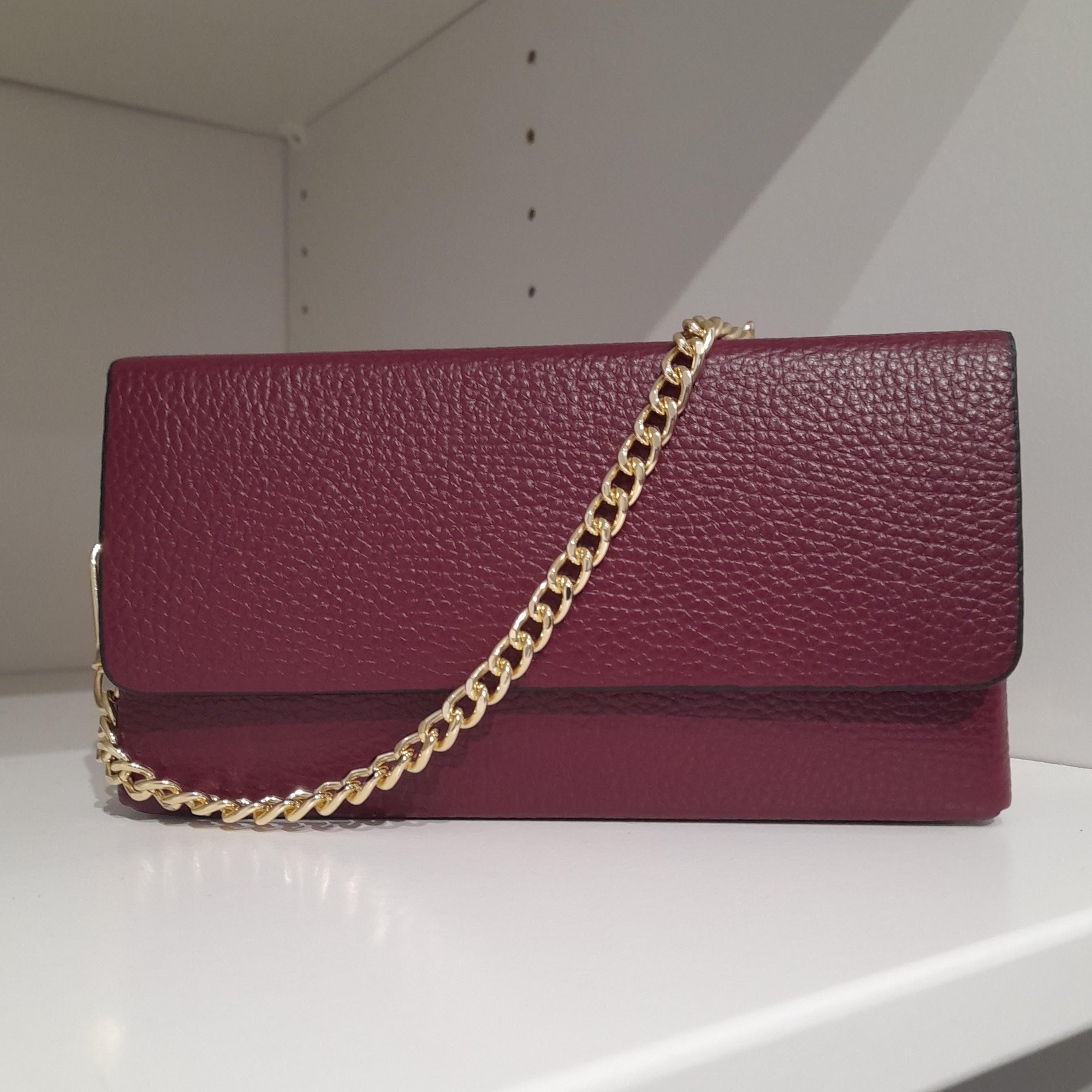 The compact silhouette features a secure press stud closure and arrives with both a chain strap and clutch option, allowing you to transition seamlessly from day to evening. The rich olive green hue offers sophisticated versatility, complementing a range of wardrobes whilst maintaining a refined aesthetic. An investment piece designed for discerning style.