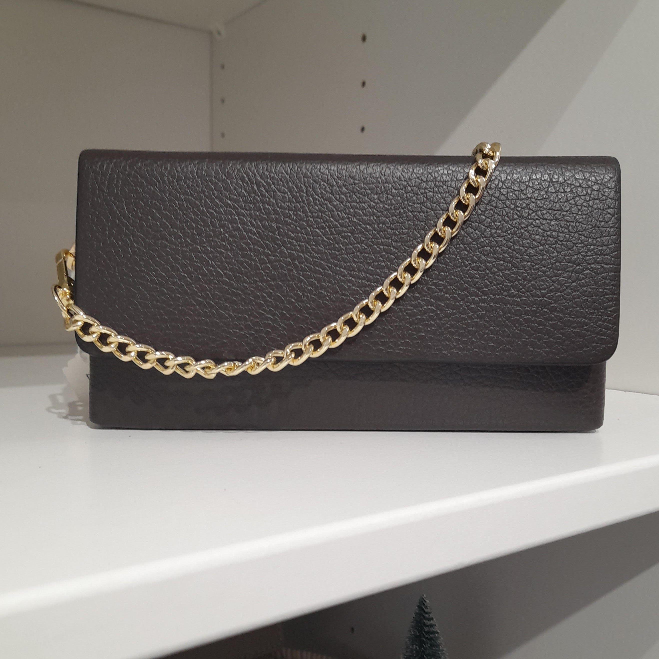 The compact silhouette features a secure press stud closure and arrives with both a chain strap and clutch option, allowing you to transition seamlessly from day to evening. The rich olive green hue offers sophisticated versatility, complementing a range of wardrobes whilst maintaining a refined aesthetic. An investment piece designed for discerning style.