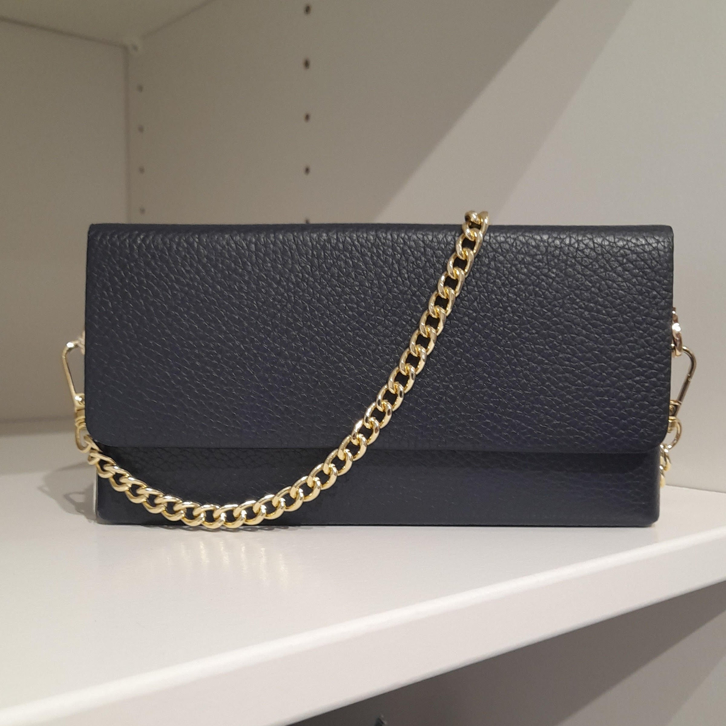 The compact silhouette features a secure press stud closure and arrives with both a chain strap and clutch option, allowing you to transition seamlessly from day to evening. The rich olive green hue offers sophisticated versatility, complementing a range of wardrobes whilst maintaining a refined aesthetic. An investment piece designed for discerning style.
