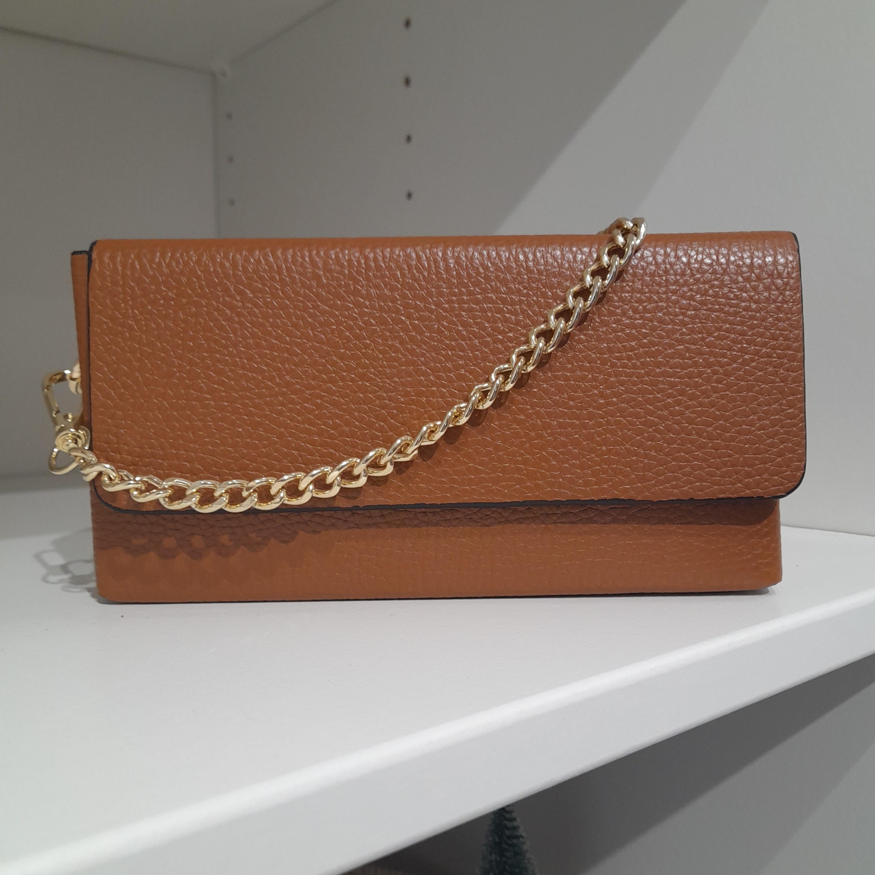 The compact silhouette features a secure press stud closure and arrives with both a chain strap and clutch option, allowing you to transition seamlessly from day to evening. The rich olive green hue offers sophisticated versatility, complementing a range of wardrobes whilst maintaining a refined aesthetic. An investment piece designed for discerning style.