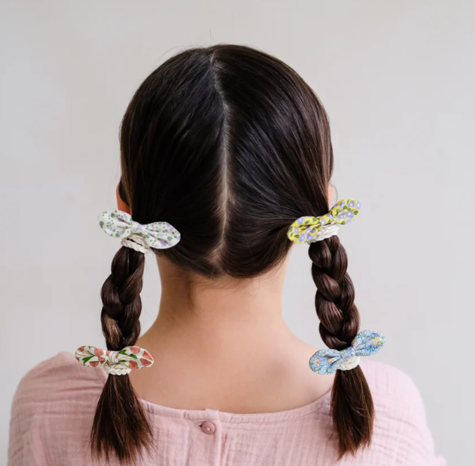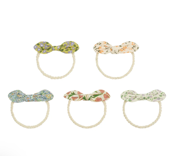 Each bow showcases botanical detailing that brings natural elegance to hairstyling, whilst the pony format allows for effortless versatility. The collection's mix-and-match potential encourages creative styling combinations, making it simple to coordinate with different outfits and occasions. A refined accessory choice for those who appreciate thoughtful design paired with seasonal appeal.