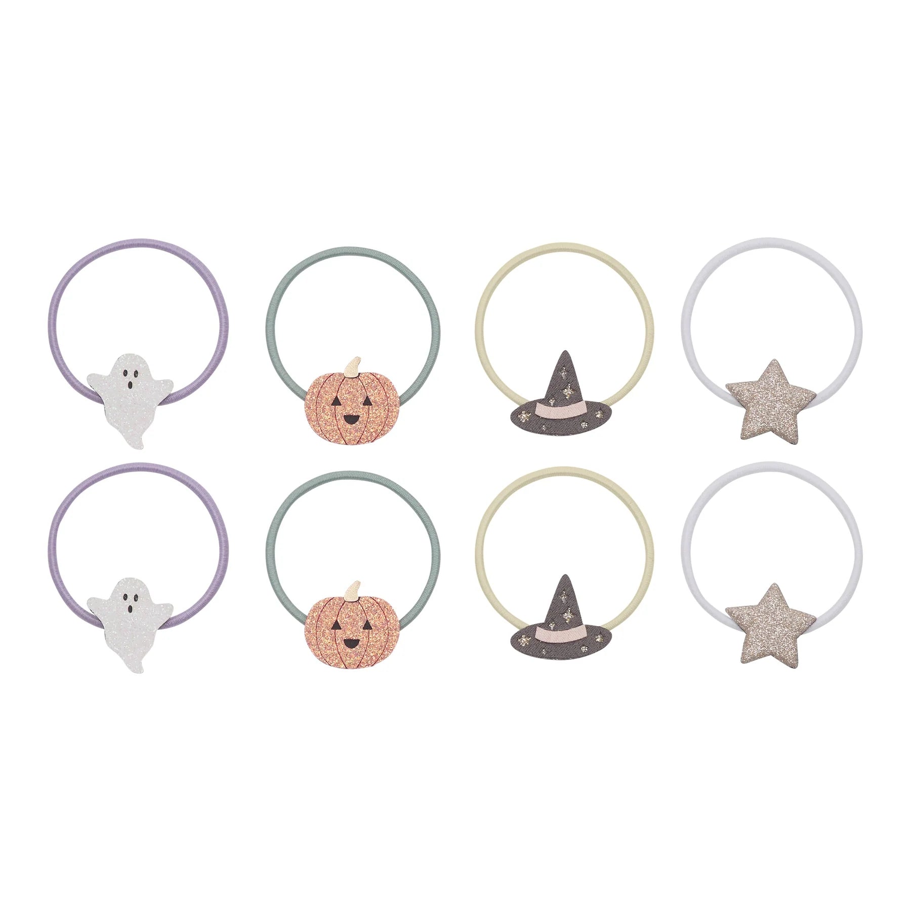 Mimi & Lula’s Halloween Ponies pack features eight sparkly ponies made from soft glitter fabrics, each secured to delicate pastel elastics.