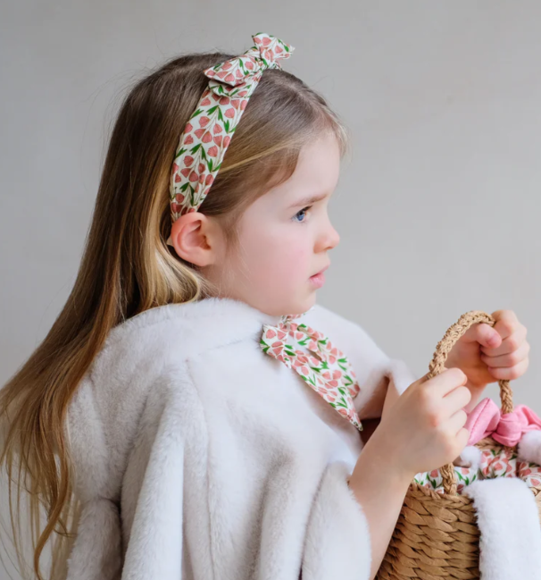 Celebrate spring with this enchanting reissue of the beloved Edie bow alice band from Mimi & Lula, now adorned in an exquisite pink tulip print.