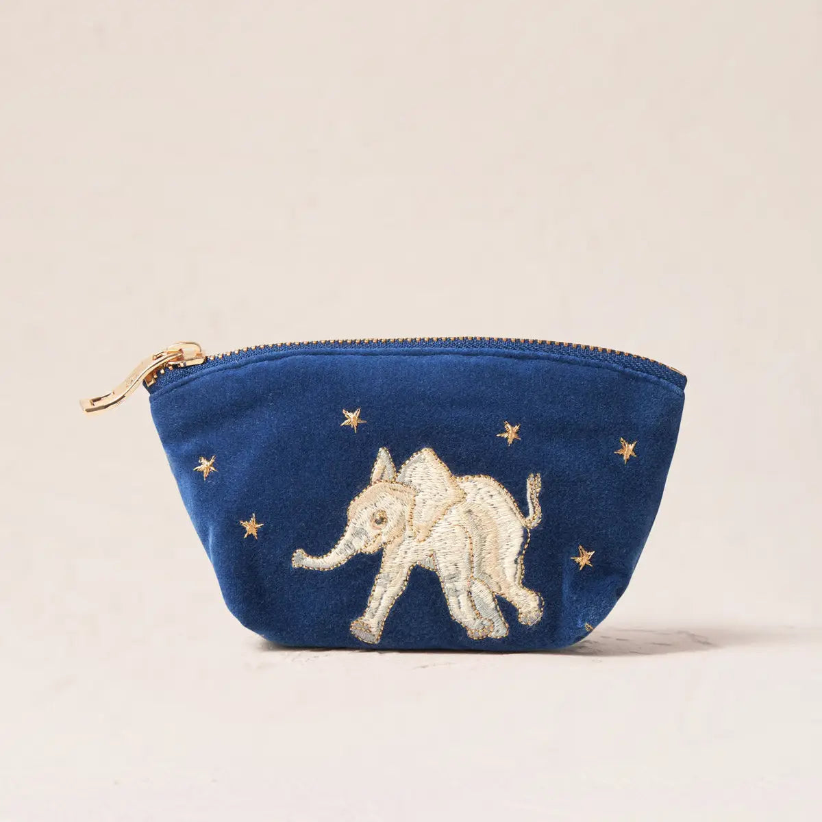 Elizabeth Scarlett - Baby Elephant Conservation Navy Velvet Coin Purse
