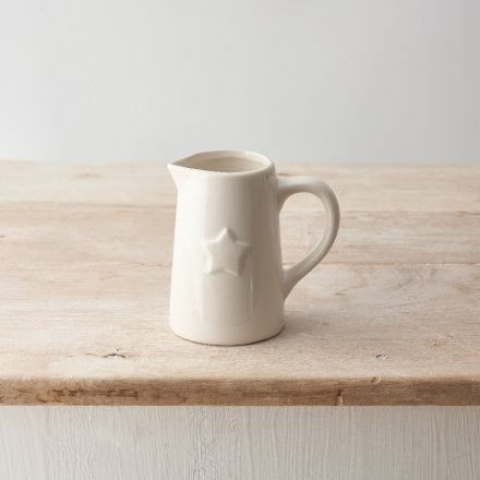 Add a touch of charm to your home with the large ceramic white jug with star design.
