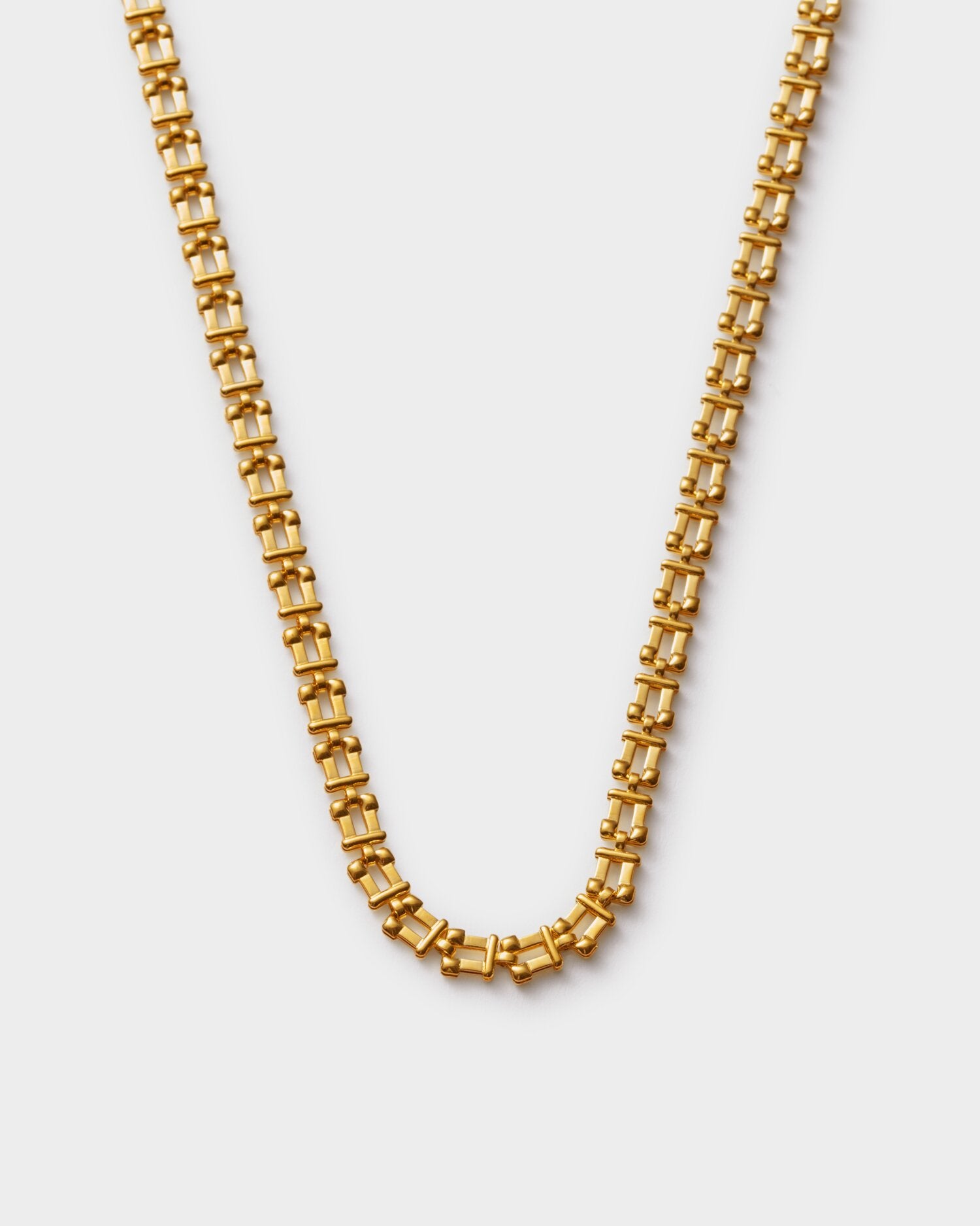 Fortified with a certified waterproof 18K gold PVD coating, this architectural piece withstands the demands of contemporary wear—remaining perfume-proof, sweat-proof, and life-proof through every moment. The geometric link design evokes timeless sophistication whilst its robust construction ensures it becomes a permanent fixture in your jewellery rotation. An investment in enduring style that refuses to compromise on either aesthetics or performance.