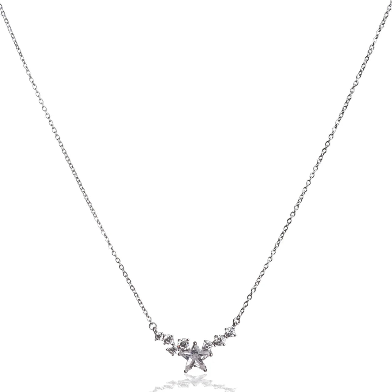 The cubic zirconia star pendant adds a touch of sparkle to any outfit, while the 16 inch chain with extension offers a perfect fit. In silver plating, this necklace adds a touch of glamour to any occasion.