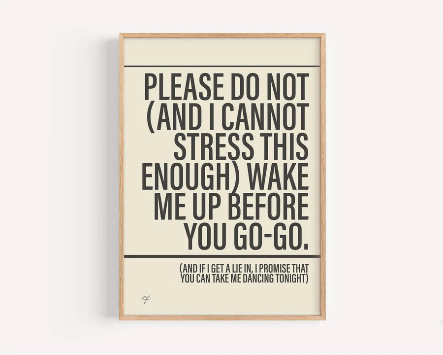 This A3 unframed print, inspired by Wham!'s iconic song "Wake Me Up Before You Go-Go," brings a vibrant musical energy to any space.