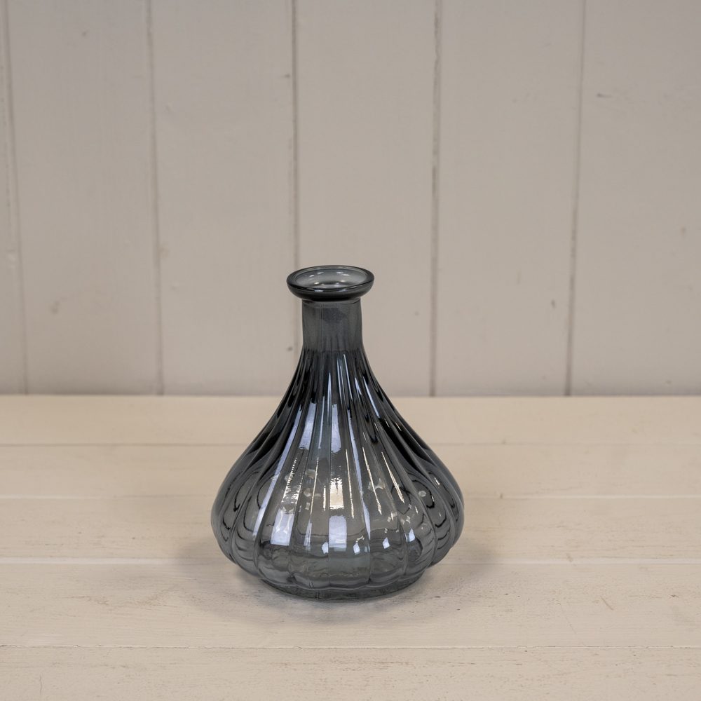 Elevate your home decor with the Satchville Cool Grey Ribbed Bud Vase.