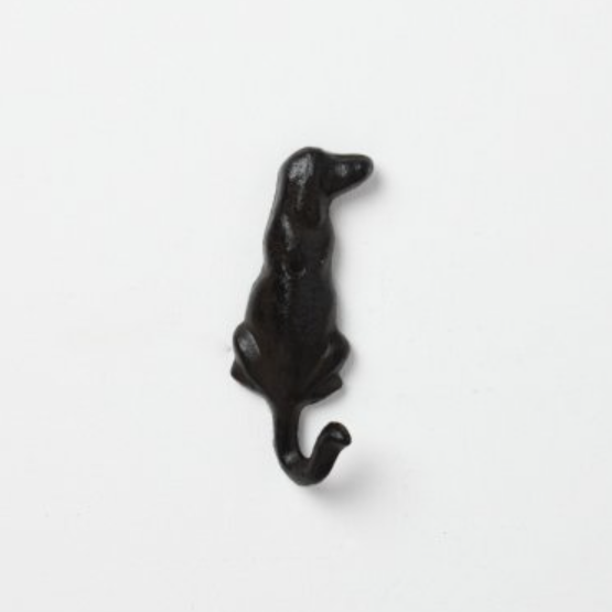 Charming cast iron hook shaped like a dog's tail, perfect for hanging leads, collars, and leashes.