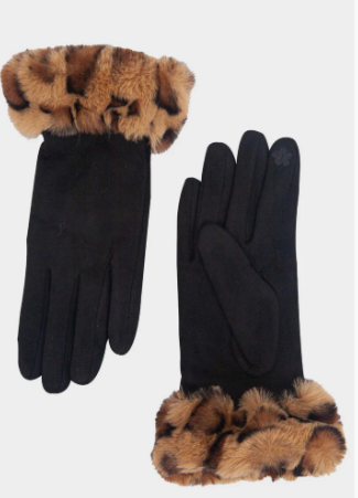 Faux Fur Cuff Gloves - Black Leopard