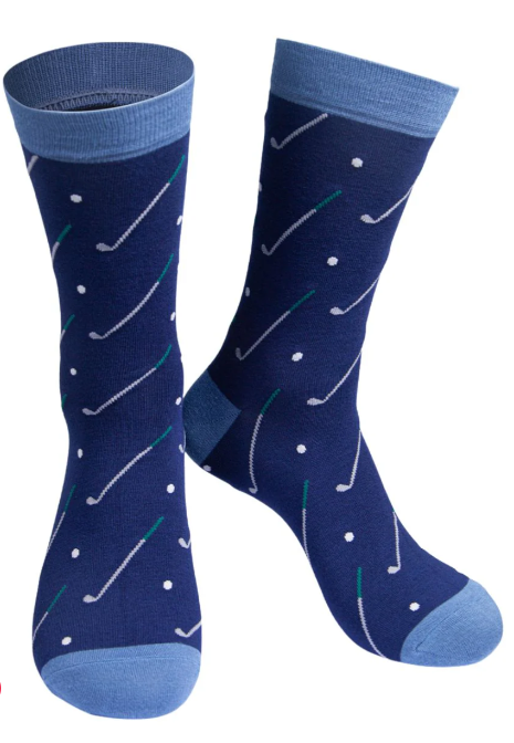 Designed in the UK, these bamboo socks bring timeless elegance to your everyday wardrobe with their classic blue golf club pattern.
