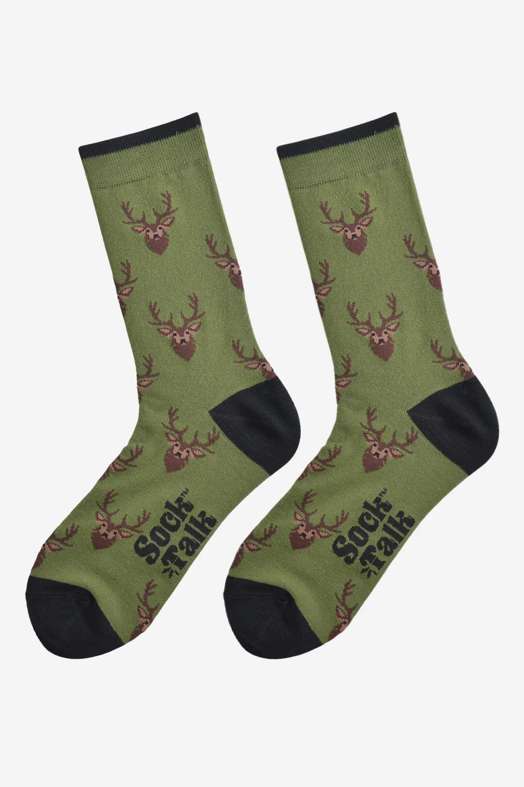 Men's Bamboo Socks - Green & Black Stag - UK 7-11