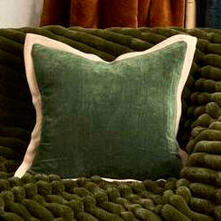 Velvet Flange Cushion - Olive