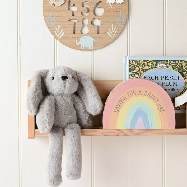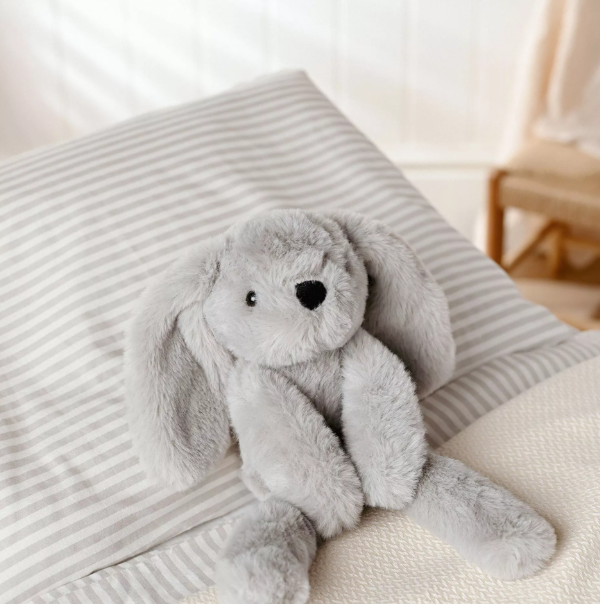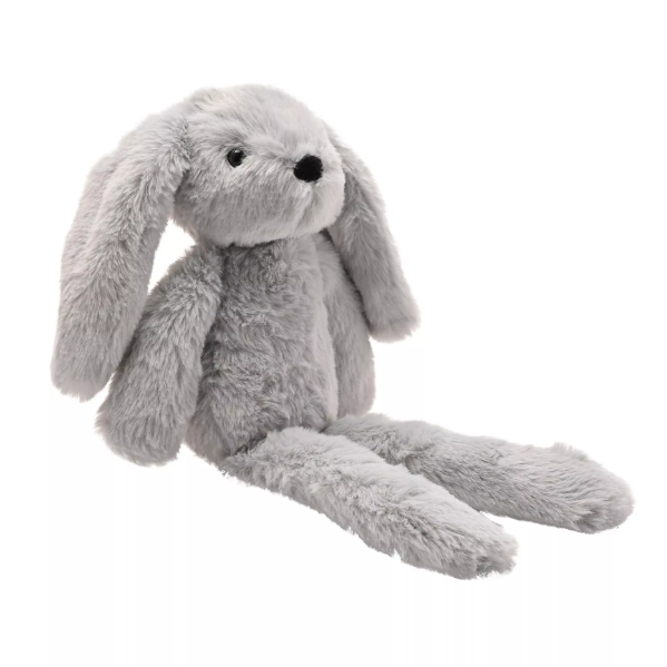Meet Theo The Plush Long Leg Grey Bunny, a soft and cuddly friend with a big heart and even bigger legs for bouncing fun!