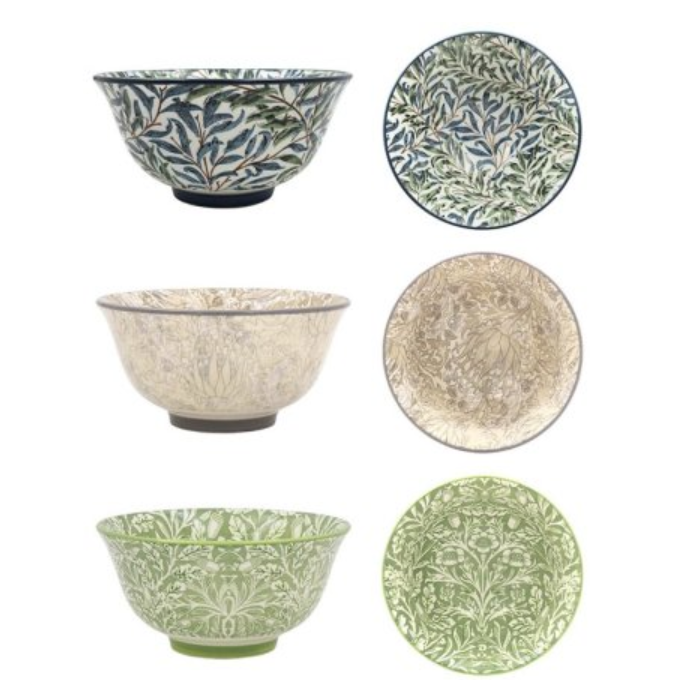 Elevate your dining with these charming printed bowls featuring the timeless William Morris design.