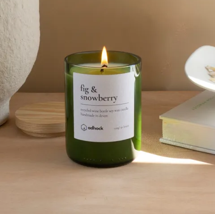 Handcrafted in Devon, UK, the Adhock Fig & Snowberry Wine Bottle Candle combines eco-conscious design with artisanal quality. Each candle is hand-poured into repurposed wine bottles, expertly cut and polished to ensure a smooth, safe finish.