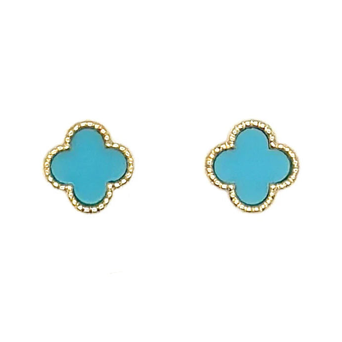 Isles & Stars - Clover Shaped Stone Stud Earrings - Gold & Turquoise