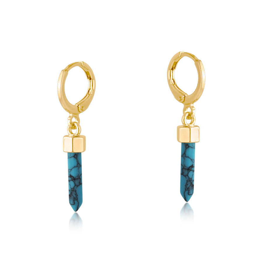 Big Metal London - Gold Baton Drop Earrings - Blue