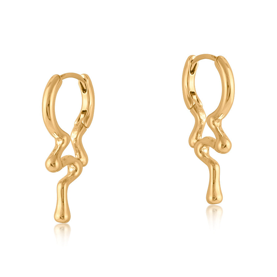 These handcrafted Big Metal London Paint Drop Earrings in gold showcase a distinctive curved design that elevates any outfit with a modern edge.