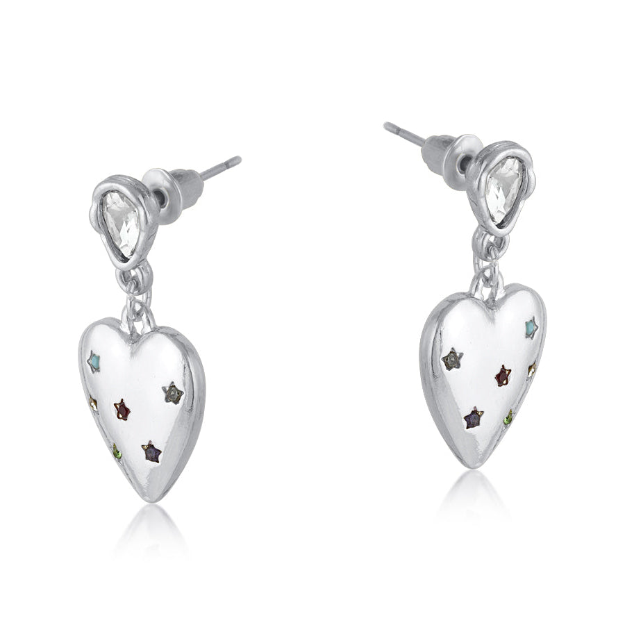 Big Metal London - Drop Heart Earrings Coloured Stones - Silver