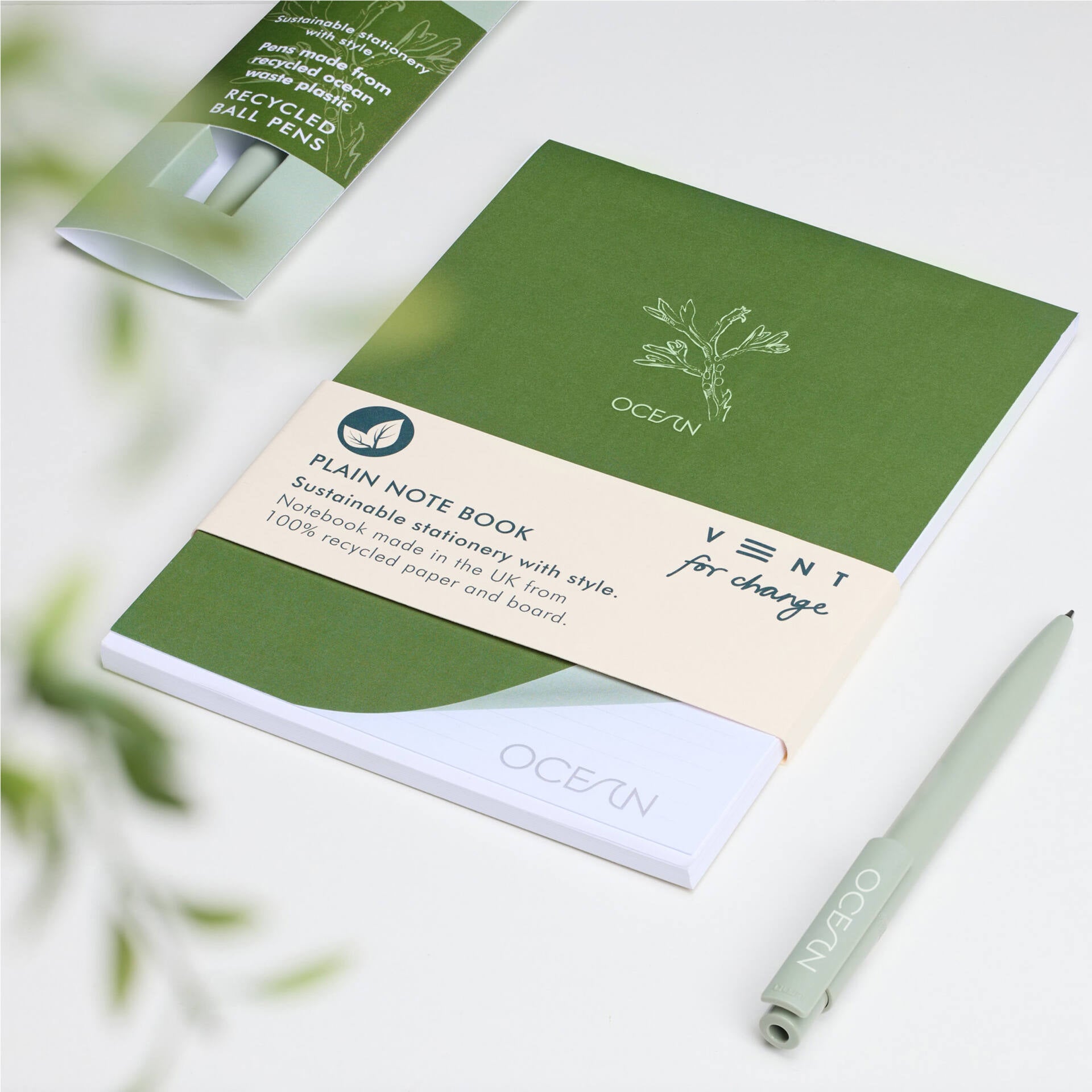 Made from 100% recycled paper and card, with a beautiful Ocean graphic cover and lined pages. Get it alone or with a matching clipboard.