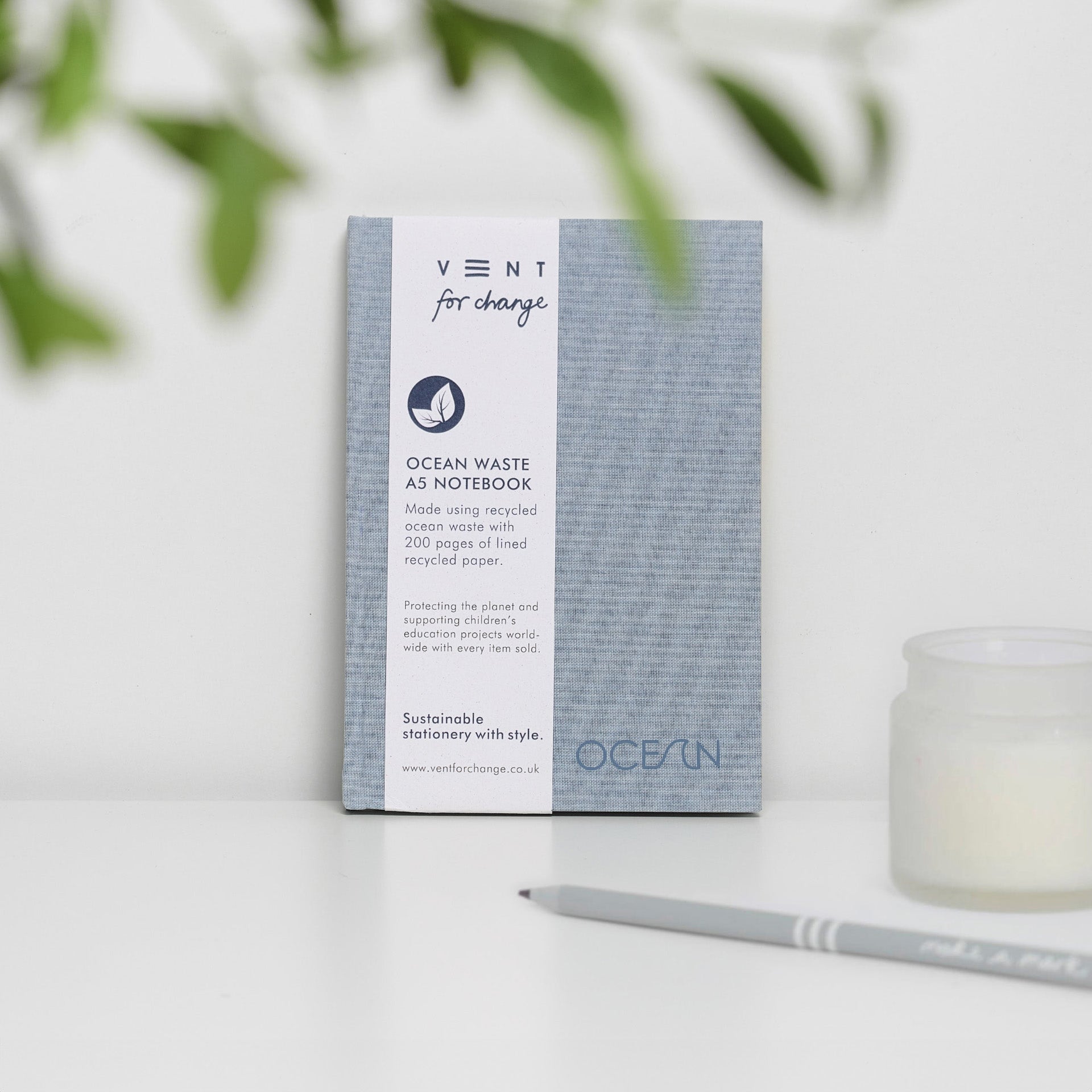 Proceeds from this notebook made from recycled Ocean plastic Waste A5 in Sea Blue go towards the VENT For Change Ambassador for Change Programme. Providing free pencils for schools and communities around the world.