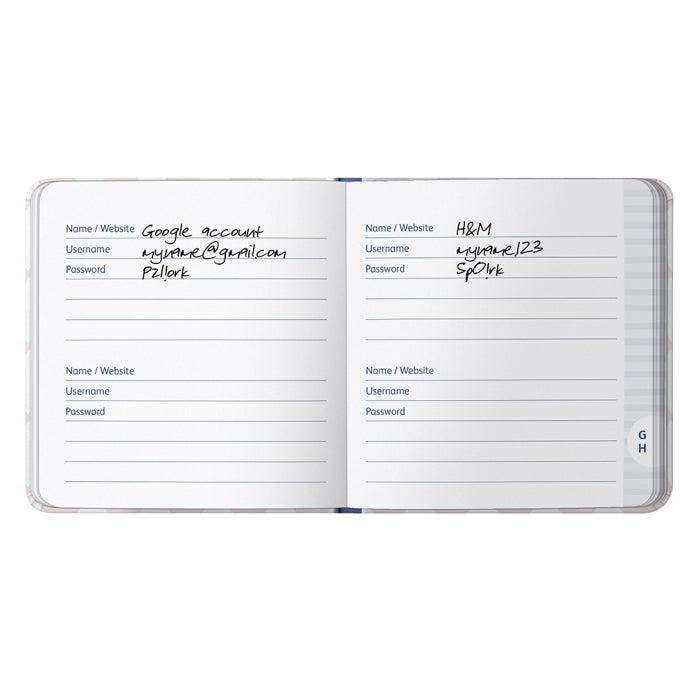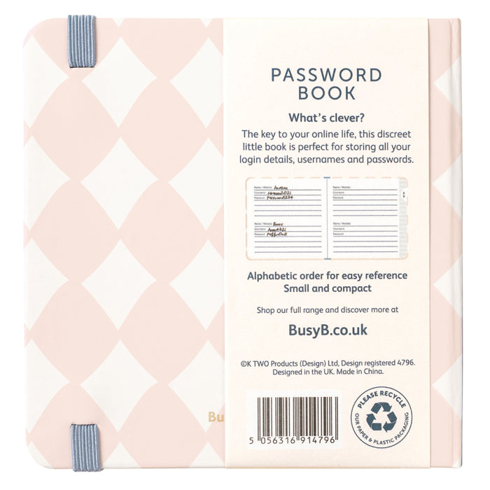 Keep your login details safe and organised with the BusyB Password Book - Harlequin.