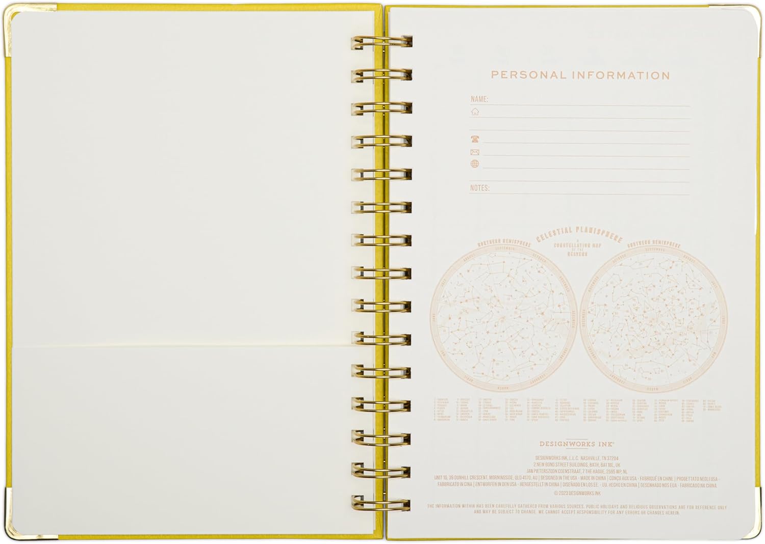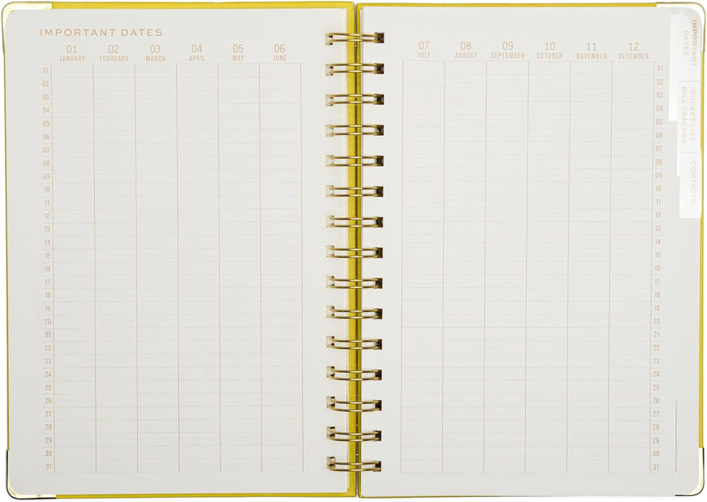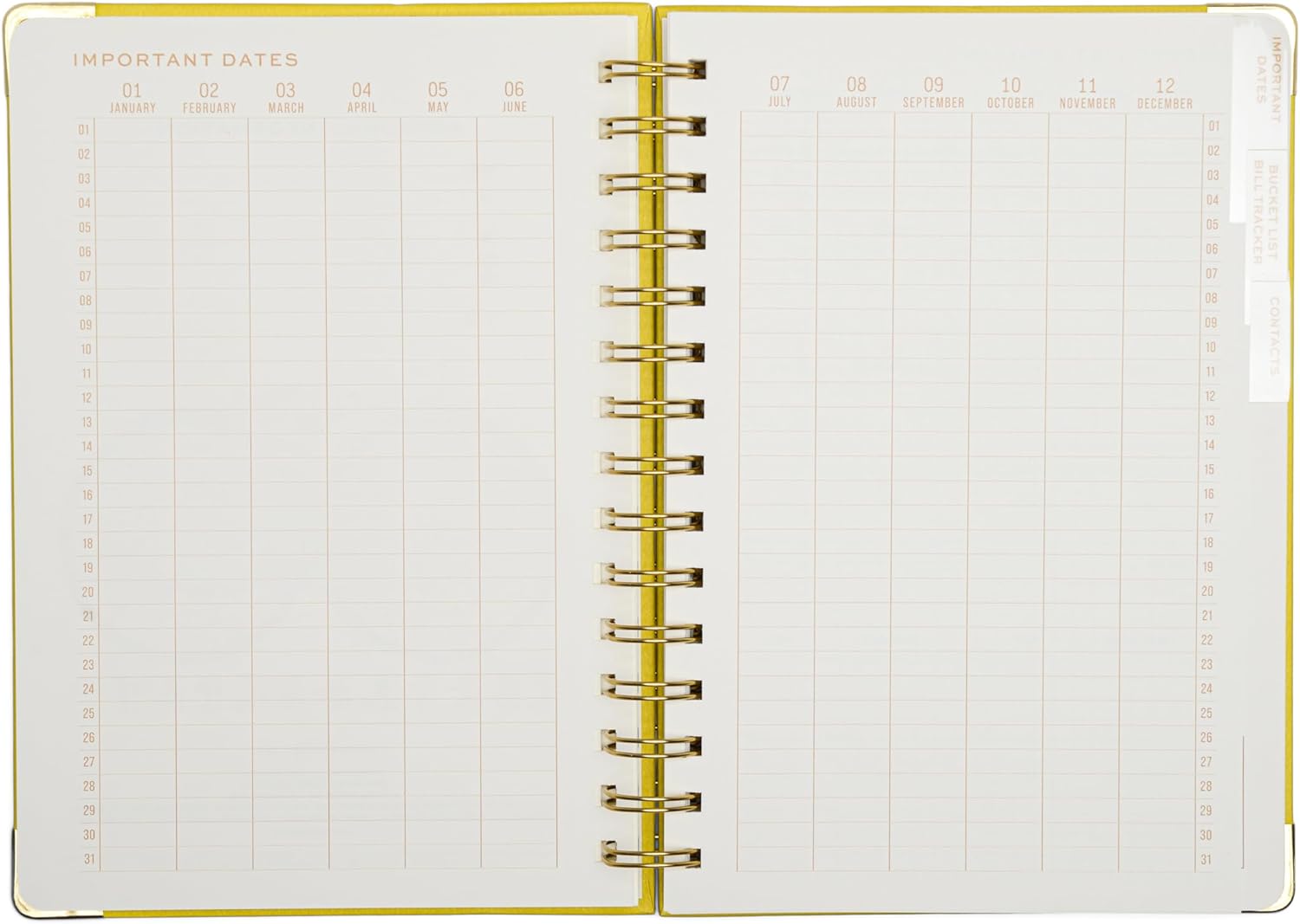 Its vibrant design brings joy while fill-in-the-date pages and daily highlight tracking keep you organised. The wirebound planner features a hardback cover, metal corner protectors, and a chic gold finish for durability.