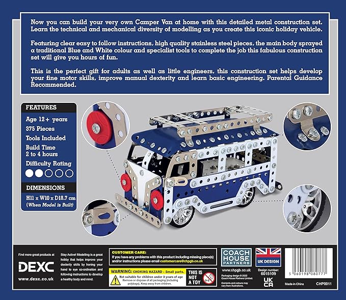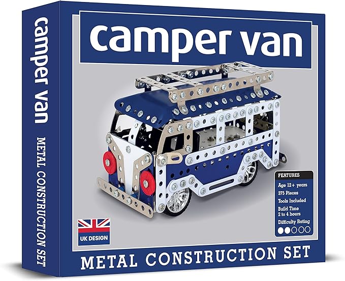 Construct a detailed camper van replica with this precision metal model kit, engineered for builders seeking a satisfying hands-on challenge.