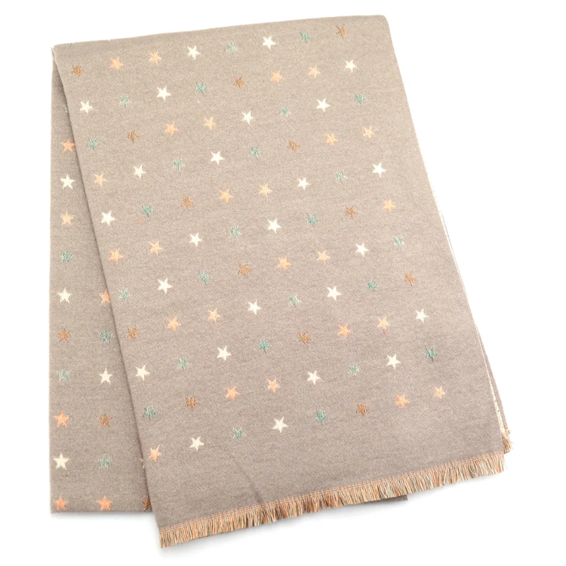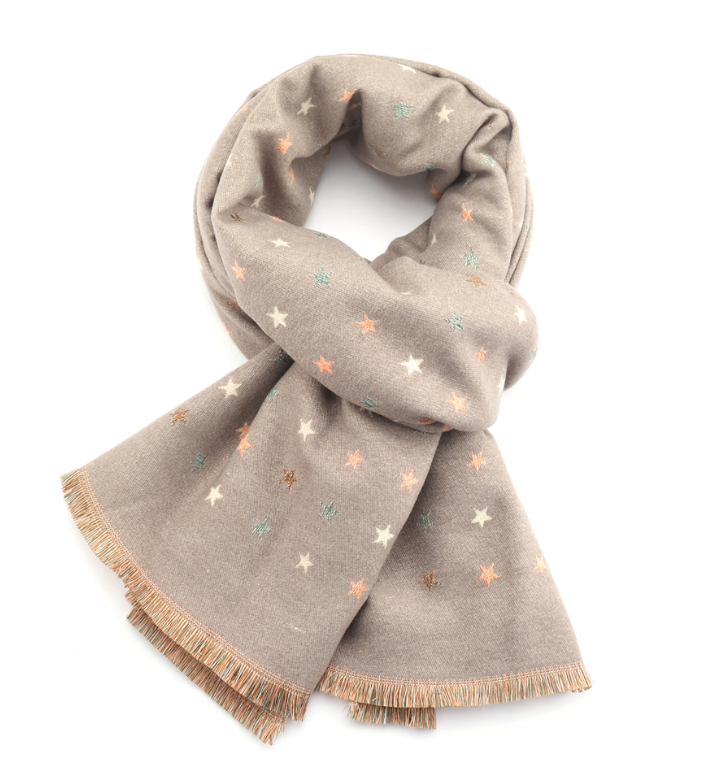 Adorned with a delicate star motif, this scarf brings a touch of personality to your winter wardrobe whilst maintaining sophisticated restraint. Constructed from premium materials, it provides genuine thermal comfort for cold weather whilst remaining lightweight enough for layering. The versatile grey base ensures effortless coordination with existing pieces, whether styled casually or dressed up for evening wear. Generously sized for multiple draping options, it delivers the enveloping cosiness that defines a truly indispensable winter accessory. An inspired gift for those seeking a blend of playful design and enduring quality.